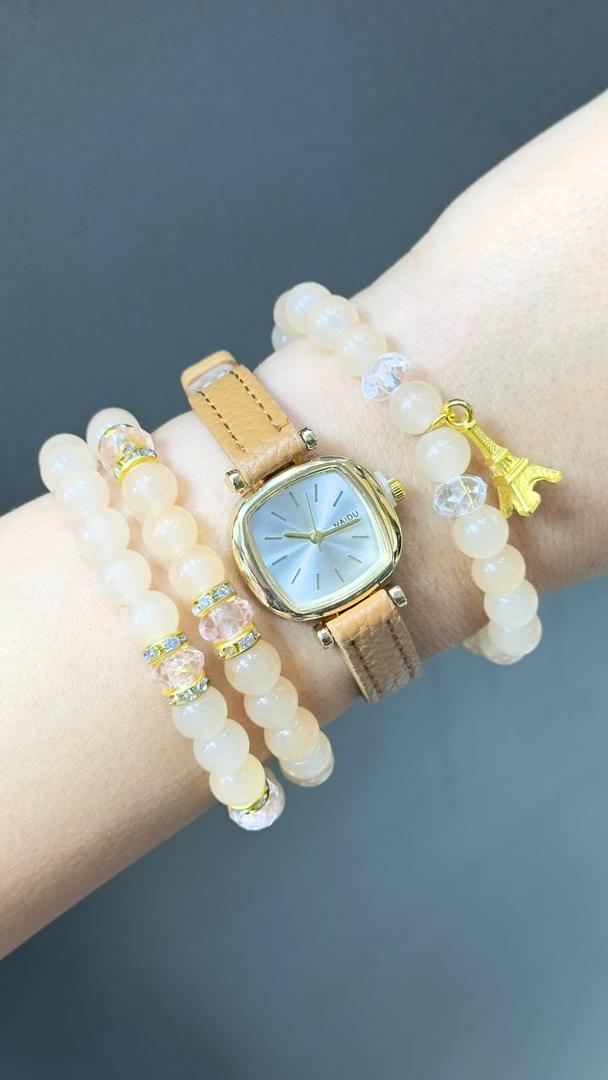 "استایل و دقت در کنار هم: ساعت ریز چرمی دور دوخت برای لحظات خاص شما."